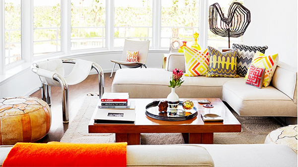 Palm Springs, CA home of fashion designer Trina Turk, Justin Coit Photography, MyDomaineWe’ll begin with the bright and creative mid-century designed home of Trina Turk. Trina’s Palm Springs home is California cool with a mod, vintage vibe. I am really loving all of her funky and artistic elements! I would definitely say that Trina’s home is a reflection of her fashion taste, which is all about the use of whimsical bright colors, but with sophistication. As you know, I am a lover of color as well, so I have always been drawn to Trina Turk’s fashion designs, but her home design is fantastic as well!