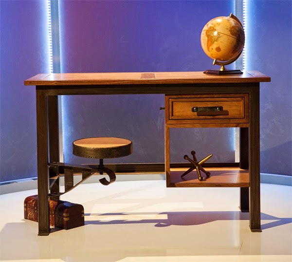 Just to get you caught up, Tim McClellan’s military campaign desk (shown below) was the project winner on the premiere episode of Ellen’s Design Challenge. The craftsmanship is impeccable, and the drawer shown pulls out to a carry around case with a handle, containing all of the drawer’s contents, just like traditionally used in wartime.