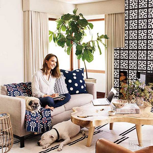 Jessica Alba’s newest home has a lovely, natural feel to the space and features a range of great patterns from her fireplace tile to her amazing textile selections.
